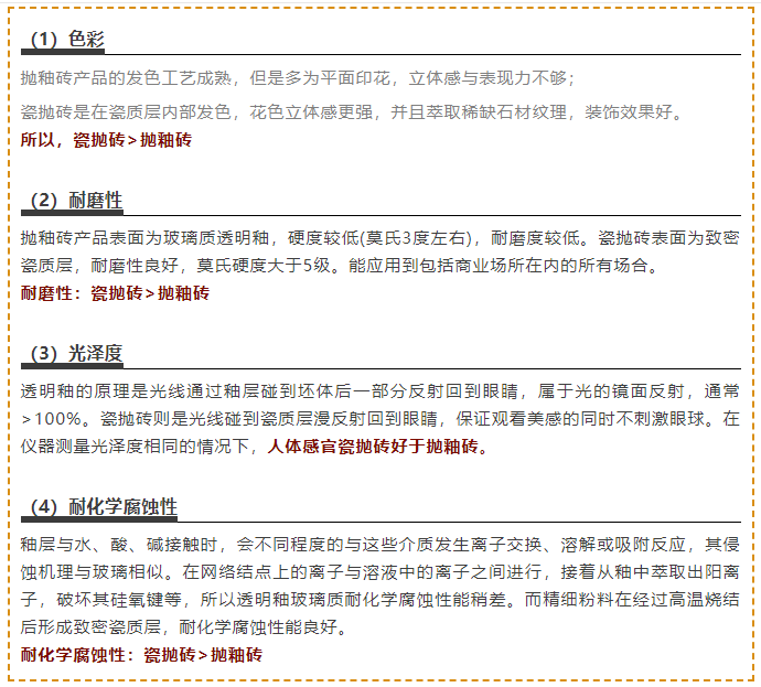 解析:瓷磚的價(jià)格不能一味地與質(zhì)量畫等號(hào)。誠(chéng)然,質(zhì)量好的瓷磚,價(jià)格一定會(huì)有一個(gè)較高的底線,但是價(jià)格還受很多其他因素的影響,除時(shí)尚、流行的花色會(huì)在一定程度上影響產(chǎn)品價(jià)格外,新的工藝和研發(fā)、使用新的設(shè)備都會(huì)提高產(chǎn)品的成本。而對(duì)于拋光磚,表面的光潔度也影響其價(jià)格高低,但與產(chǎn)品本身質(zhì)量無關(guān)。
